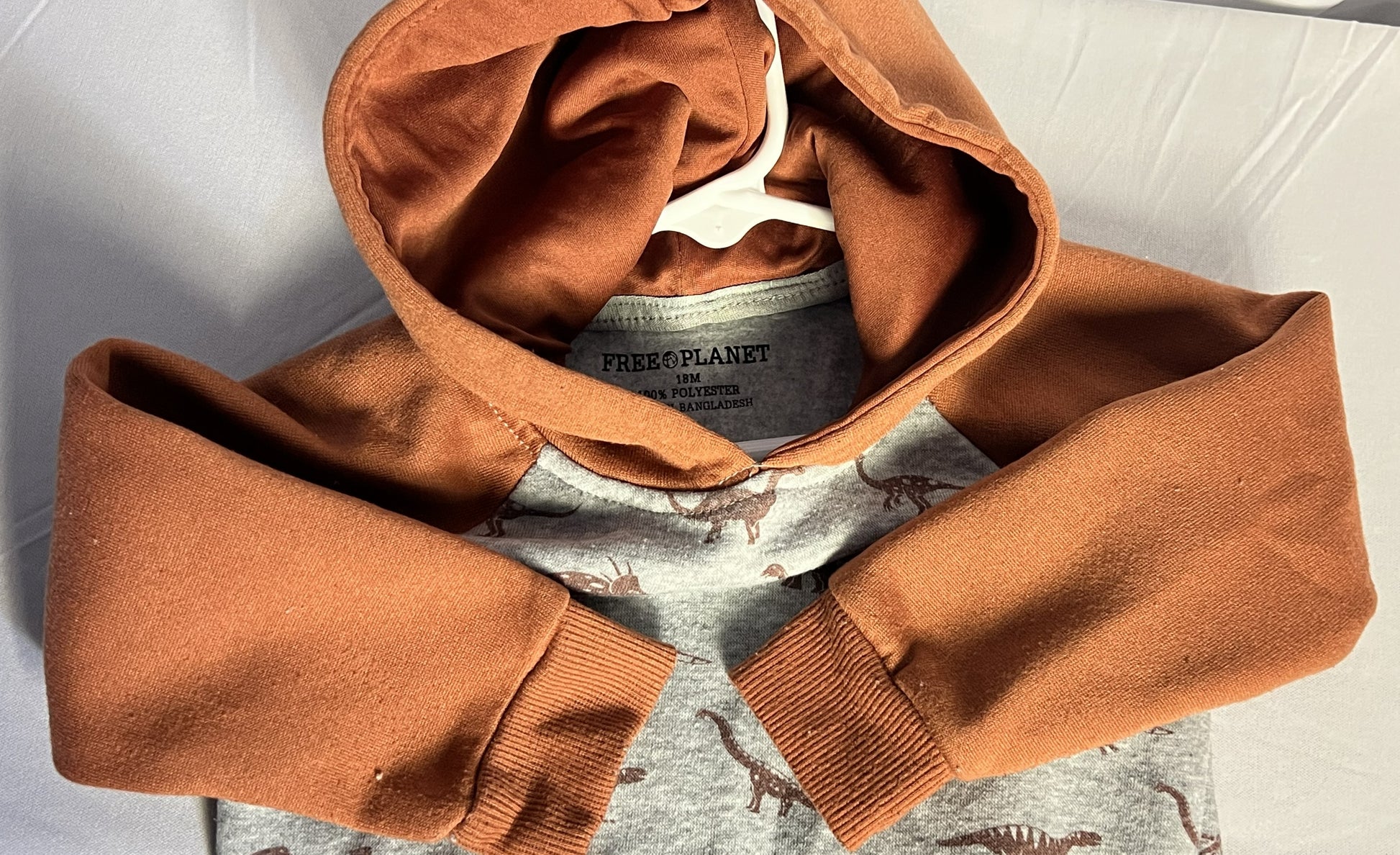 Dinosaur sweater, sienna arms and hoody with dinosaur print. Sol wore a few times.