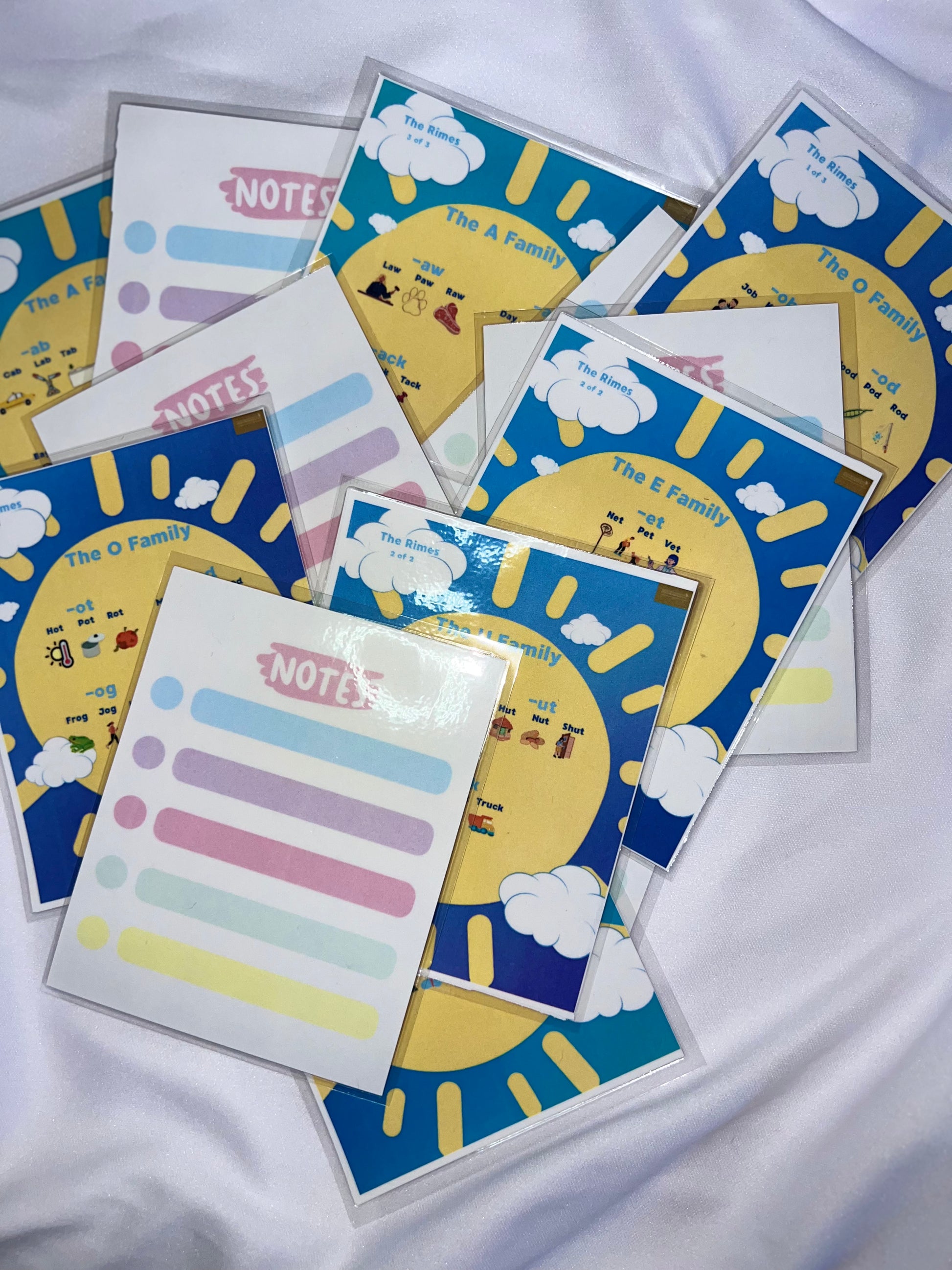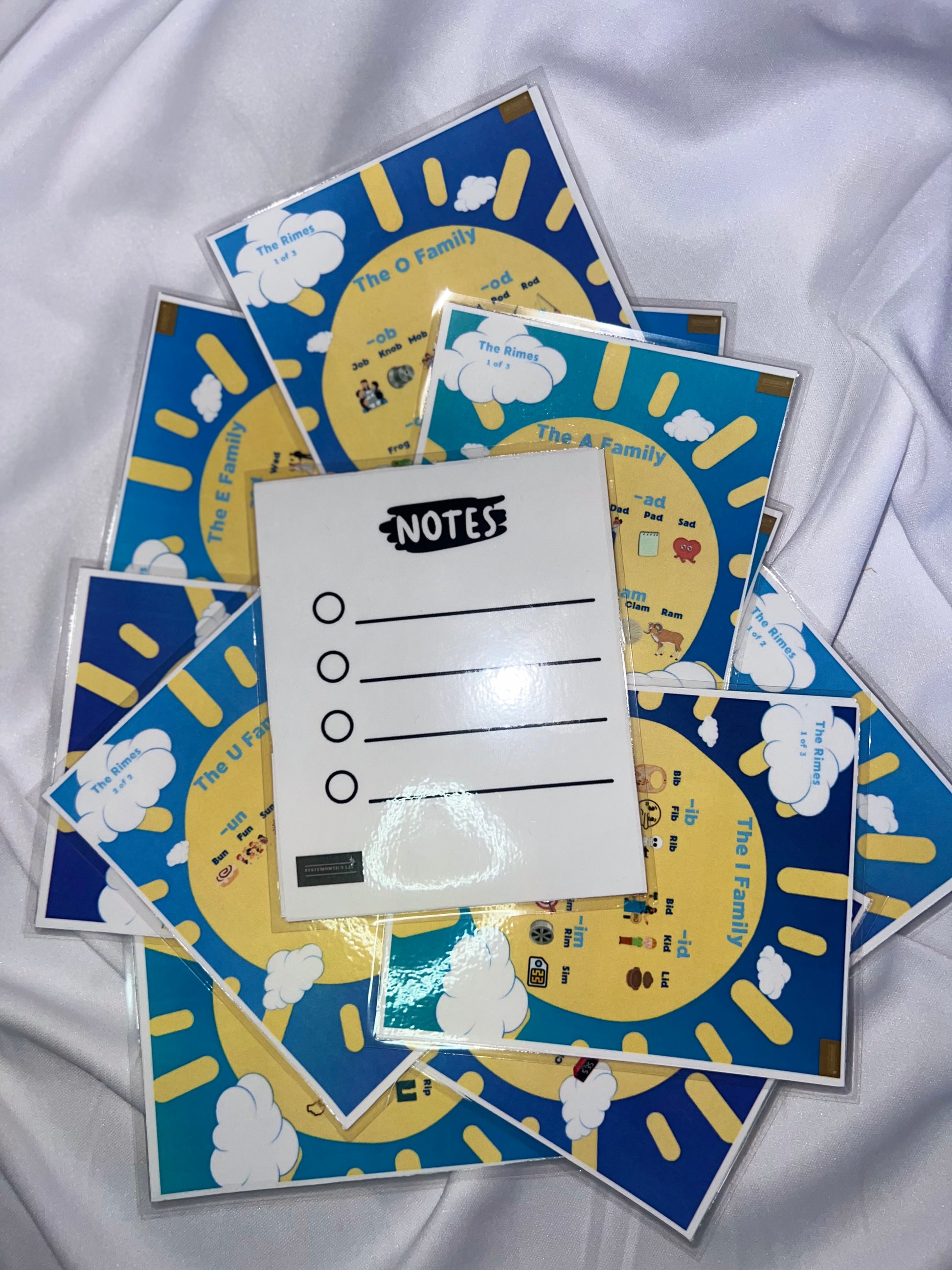 Taking the next step in your children education and help them familiarize themselves with word that rhyme, hence the Rimes. This pack of 5x4in flashcards are handy on the go with note taking space available on the back for easy writing and clean up. Forget the tablet and go a lil old school with laminated paper and dry erase marker!